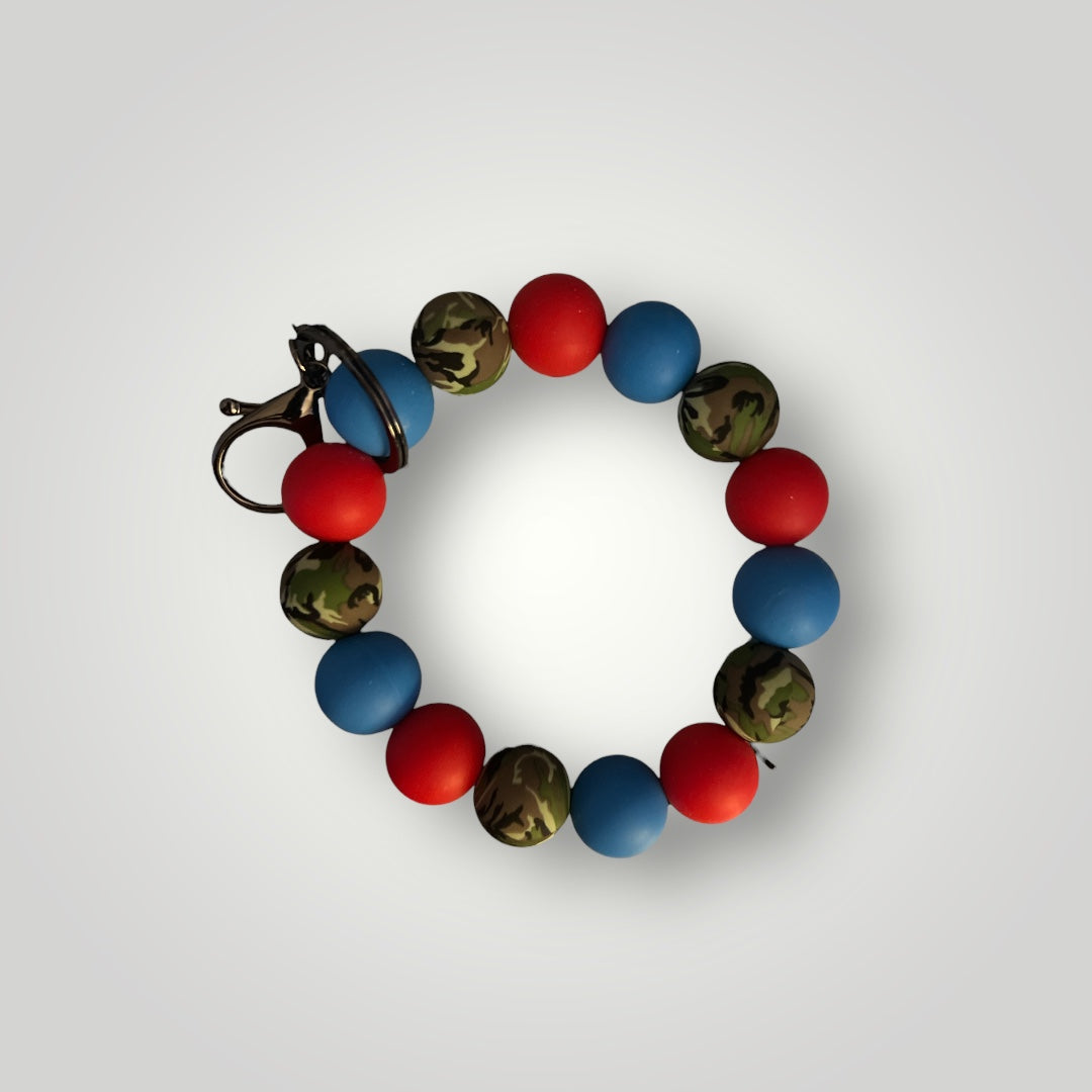 This wristlet was made using 19mm silicone beads with a gunmetal lobster claw keychain.